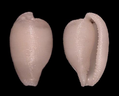 Im Clubheft Nr. 37 (2006) wurden mehrere südafrikanische Kauris neu beschrieben. Die eine, Cypraeovula kesslerorum Lorenz 2006, war nur von wenigen Exemplaren bekannt. In der Zwischenzeit ist ein weiteres gefunden worden, das die Merkmale dieser eigenartigen Kauri gut zeigt: ein schweres, kugeliges Gehäuse mit deutlichen Rippen auf der Basis und den Rändern sowie brauner Musterung auf dem Dorsum. Das neue Exemplar wurde vor Port Alfred gefunden, die Typen stammten von East London, alle kamen aus einer Tiefe um 100 m. ![]() Cypraeovula capensis archilyra Van Heesvelde & Deprez 2006 war nur anhand von Totfunden beschrieben. Diese extrem seltene Tiefwasser-Population aus dem Süden Natals ist sehr charakteristisch. Das Gehäuse ist deutlich kleiner, es fehlt jegliche Pigmentierung, die Rippen sind wesentlich feiner. Das hier abgebildete Exemplar (19 mm) dürfte der erste bekannte Lebendfund sein, aus 120 m Tiefe von Port Shepstone. ![]()